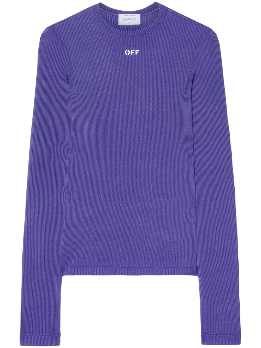 Off Stamp long-sleeve top Highlights - Purple - Logo stamp to the front - Ribbed detailing - Round neck - Long sleeves Made in Italy Composition Viscose 94%, Spandex/Elastane 6% Washing instructions Read Manufacturer Guidelines