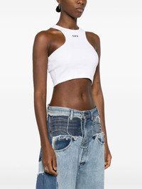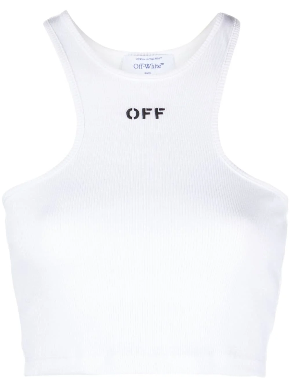 Off-Stamp ribbed crop top Off-White utilises their signature black and white tones with this sleeveless top. Boasting a cropped construction, the piece features a contrasting logo print to the front. Highlights - White - Stretch-cotton - Fine ribbed - Logo print to the front - Sleeveless - Racerback - Straight hem - Cropped Made in Italy Composition Cotton 98%, Elastane 2% SIZE & FIT Model measurements Height 5 ft 10 in(1.78 m) Bust/Chest 31.49 in(80 cm) Hips 37 in(94 cm) Waist 23.62 in(60 cm) FittingInformation Designed for a close fit throughout Cropped in length Made from a midweight stretch fabric, this piece offers elasticity and flexibility when worn This piece fits true to size – take your usual size Washing instructions Machine Wash