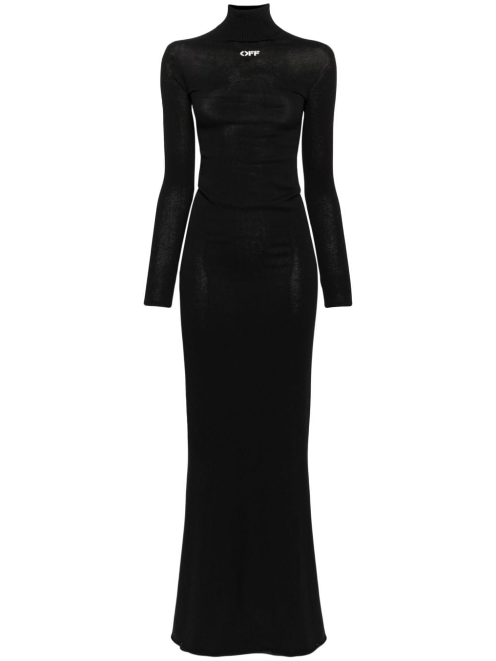 Off Stamp slick maxi dress Highlights - Black - Knitted construction - Embroidered logo - High neck - Long sleeves - Maxi Made in Italy Composition Viscose 68%, Polyester 32% SIZE & FIT Model measurements Height 5 ft 10 in(1.77 m) Bust/Chest 27.95 in(71 cm) Hips 34.64 in(88 cm) Waist 22.83 in(58 cm) FittingInformation Designed for a close fit throughout Particularly long in length; consider your own measurements Made with a lightweight knit, this piece offers some stretch