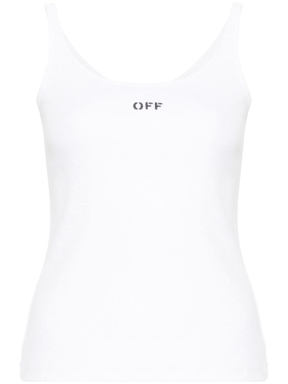 Off Stamp stretch-cotton tank top Off-White's vest top is punctuated with the streetwear brand's enduring Off Stamp logo at the front. The contrasting black letters pop against the white backdrop. Highlights - White - Stretch-cotton - Soft jersey - Embroidered logo at the chest - Scoop neck - Sleeveless Made in Italy Composition Cotton 98%, Elastane 2% SIZE & FIT Model measurements Height 5 ft 9 in(1.76 m) Bust/Chest 33.07 in(84 cm) Hips 34.64 in(88 cm) Waist 25.59 in(65 cm) FittingInformation Designed for a close fit throughout Made from a midweight stretch fabric, this piece offers elasticity and flexibility when worn This piece fits true to size – take your usual size