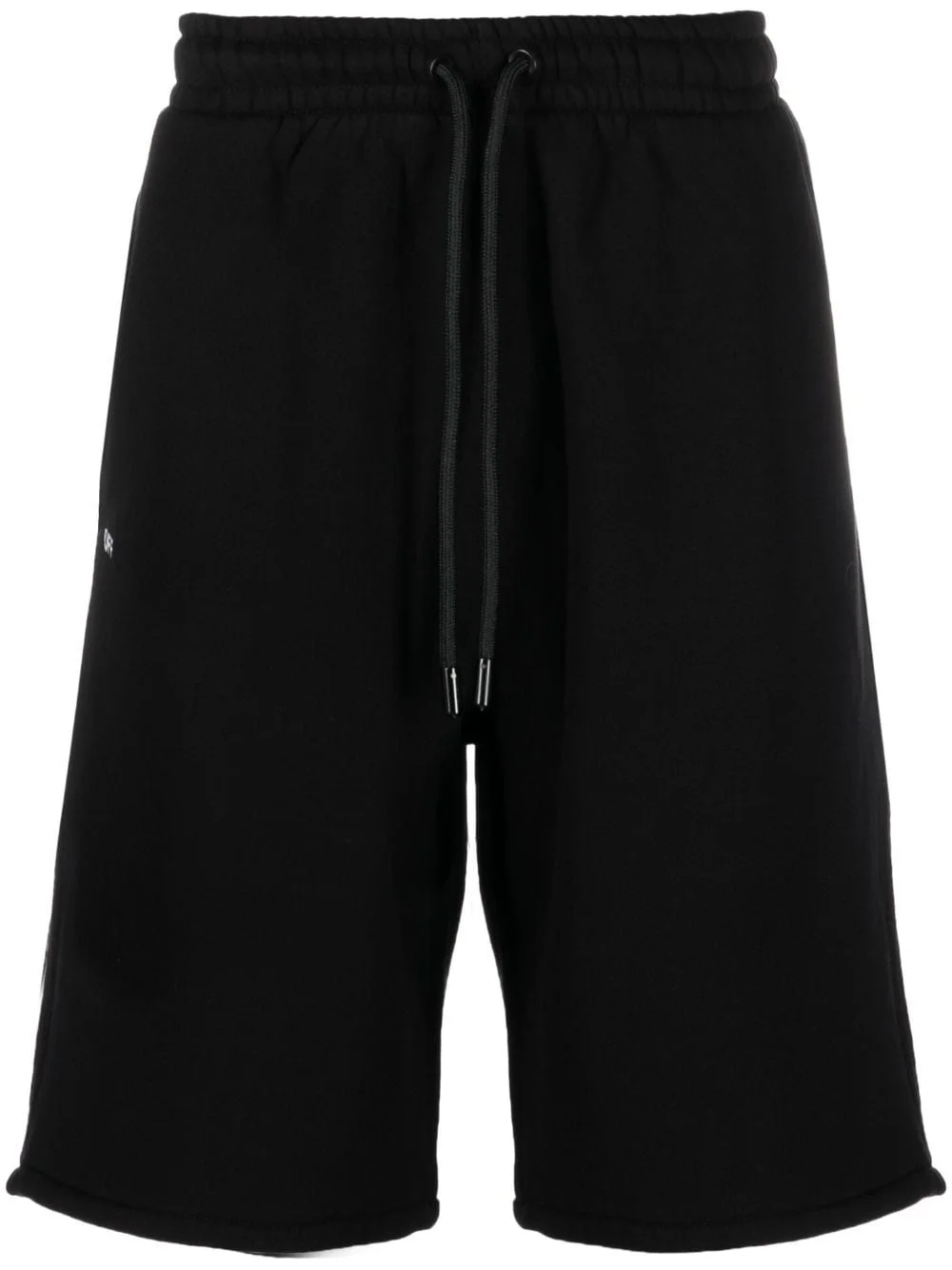 organic-cotton track shorts Famous for its branded designs, Off-White presents these black organic-cotton track shorts. They're stamped with the label's logo in contrasting white letters at one leg. Highlights - Black - Organic cotton - Elasticated drawstring waistband - Logo print to the side - Rear patch pocket - Straight leg Imported Composition Organic Cotton 100% SIZE & FIT Model measurements Height 6 ft 2 in(1.87 m) Bust/Chest 38.18 in(97 cm) Hips 36.61 in(93 cm) Waist 29.13 in(74 cm) FittingInformation Designed with a wide leg, offering a loose and roomy fit The elasticated waist allows for a comfortable fit Made from a midweight non-stretch fabric, this piece offers minimal elasticity when worn This piece fits true to size – take your usual size