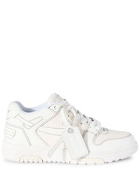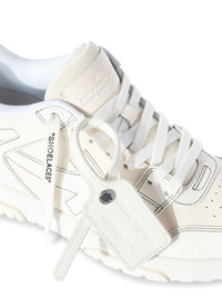 Out of Office lace-up sneakers The Out Of Office sneakers are a standout design for Off-White. Rendered in a cream white colourway, this pair is embellished with the company's signature Zip Tie tag and boasts the Arrows motif on the side, reflecting a street style inspiration. Highlights - Cream white - Recycled polyester - Signature arrows motif - Signature zip tie tag - Panelled design - Front lace-up fastening - Round toe - Flat rubber sole - Due to the dyeing process used, this product must not come into contact with water. Made in Italy Composition Leather 100%