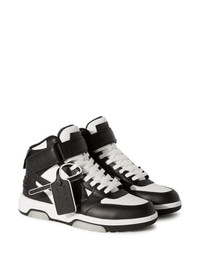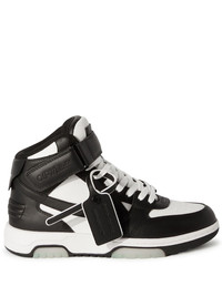 Out Of Office "OOO" sneakers Off-White looks back on the '80s and '90s tennis shoes' aesthetic and infuses the Out of Office 'OOO' sneakers with timeless accents that complement their innovative silhouette. Crafted from soft leather to a colour-block panelled design, they are detailed with a signature safety tag at the upper and the iconic arrows motif. Highlights - White/black - Calf leather - Panelled design - Signature arrows motif - Signature safety tag - Debossed logo to the side - Branded heel counter - Branded insole - Ankle-length - Ankle touch-strap fastening - Front lace-up fastening - Perforated toebox - Round toe - Flat rubber sole - Due to the dyeing process used, this product must not come into contact with water. Imported Composition Leather 100% SIZE & FIT Measurement HEEL 1.18 in(3 cm) HEIGHT 3.54 in(9 cm) Sole height 0.78 in(2 cm)