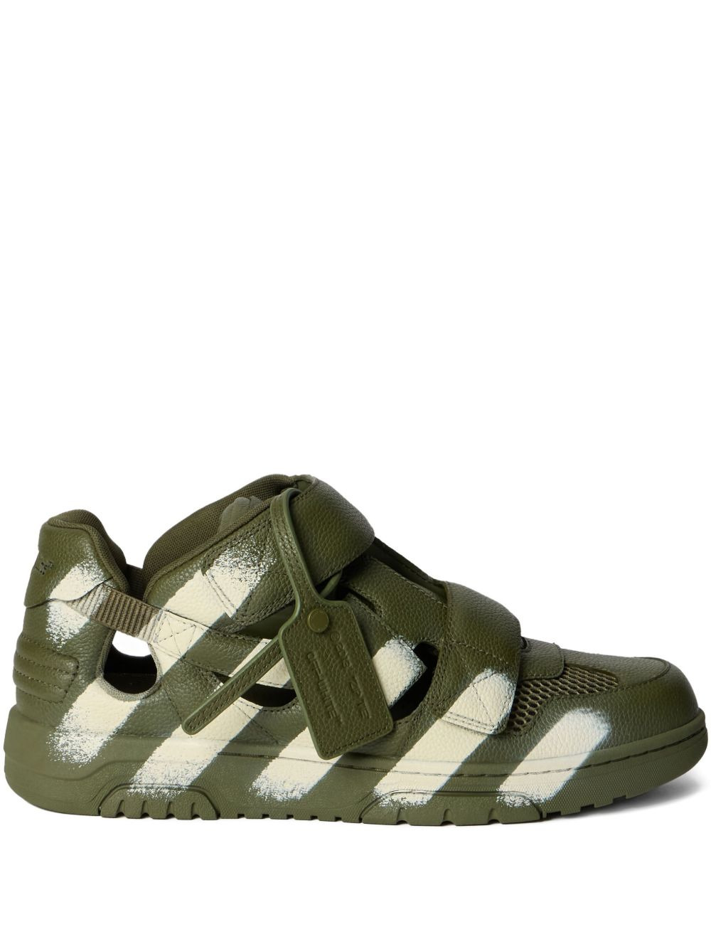 Out Of Office striped-print sneakers Highlights - Military green - Diagonal stripes - Adjustable hook-loop straps - Open toe - Textured outsole - Due to the dyeing process used, this product must not come into contact with water. Imported Composition Lining: Lambskin 52%, Polyester 48% Sole: Rubber 100% Outer: Bovine Leather 100%