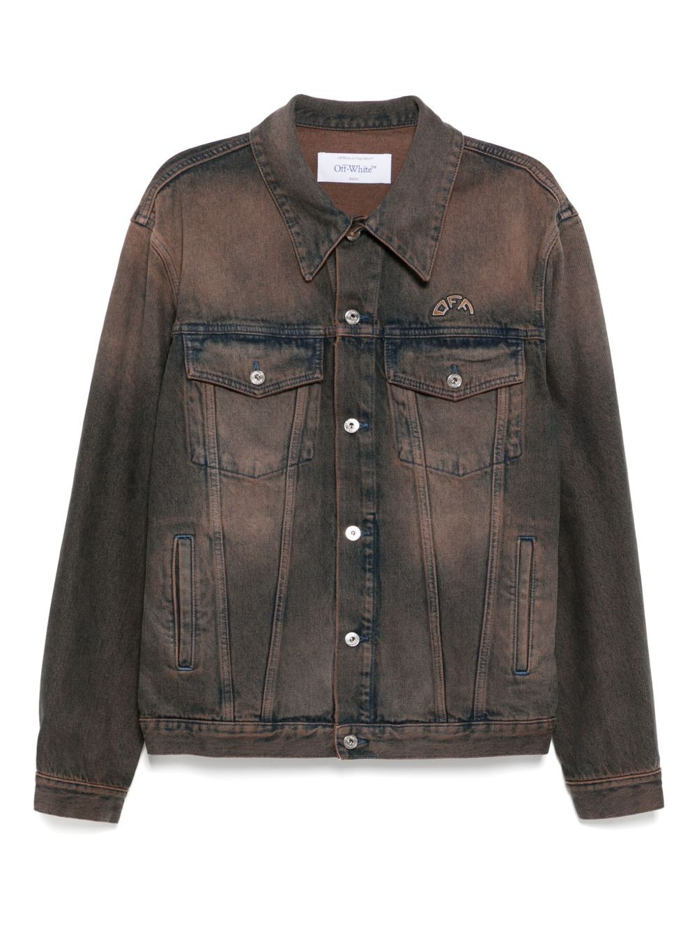 overdyed denim skate jacket Highlights - Rust brown - Front button fastening - Two button-fastening chest pockets - Buttoned cuffs Made in Italy Composition Lining: Polyester 65%, Cotton 35% Outer: Cotton 100% SIZE & FIT Model measurements Height 6 ft 2 in(1.87 m) Bust/Chest 33.07 in(84 cm) Hips 35.43 in(90 cm) Waist 26.77 in(68 cm) FittingInformation Designed to be unstructured, offering a loose fit throughout Sturdy and hard-wearing, this denim piece offers no stretch Washing instructions Machine Wash