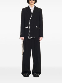 OW darted tailored trousers Highlights - Black - Virgin wool - Embroidered logo - Dart detailing - Concealed fly and button fastening - Belt loops - Two side inset pockets - Two rear welt pockets - Straight leg Made in Italy Composition Lining: Cotton 100%, Viscose 52%, Cupro 48% Outer: Virgin Wool 100%