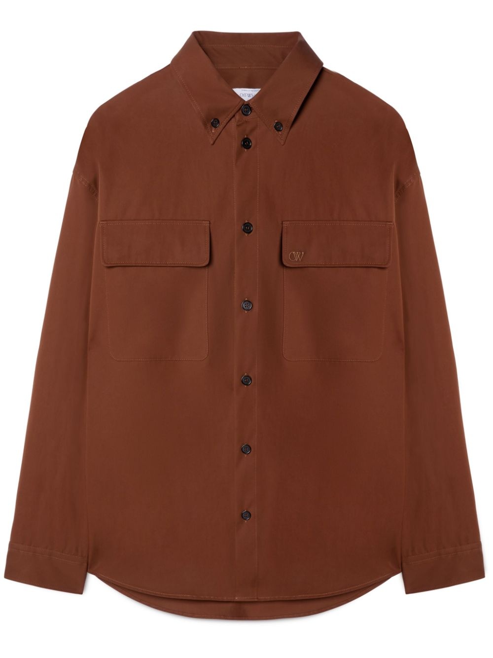 Ow Emb Cotgab Milit shirt Highlights - Tobacco brown - Cotton - Embroidered logo at the chest - Button-down collar - Front button fastening - Long sleeves - Buttoned cuffs - Two chest flap pockets - Curved hem Made in Italy Composition Cotton 100% Washing instructions Read Manufacturer Guidelines