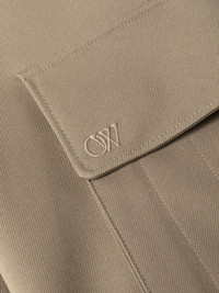 Ow Emb Drill wide-leg cargo trousers Boasting a relaxed silhouette that leans into the streetwear aesthetic that Off-White is renowned for, these wide-leg cargo trousers are rendered in a timeless beige hue and detailed with tonal embroidery at the pocket for a subtle touch of branding. Highlights - Almond beige - Mid-rise - Belt loops - Concealed front fastening - Two side cargo pockets - Embroidered logo - Rear jetted pocket - Wide leg - Straight hem - Long length Made in Italy Composition Outer: Polyester 100% Lining: Cotton 100% SIZE & FIT Model measurements Height 6 ft 2 in(1.89 m) Bust/Chest 39.76 in(101 cm) Hips 37.4 in(95 cm) Waist 29.92 in(76 cm) FittingInformation Designed with a wide leg, offering a loose and roomy fit The adjustable tabs allow for fitted preferences Made from a midweight non-stretch fabric This piece fits true to size – take your usual size Washing instructions Dry Clean Only