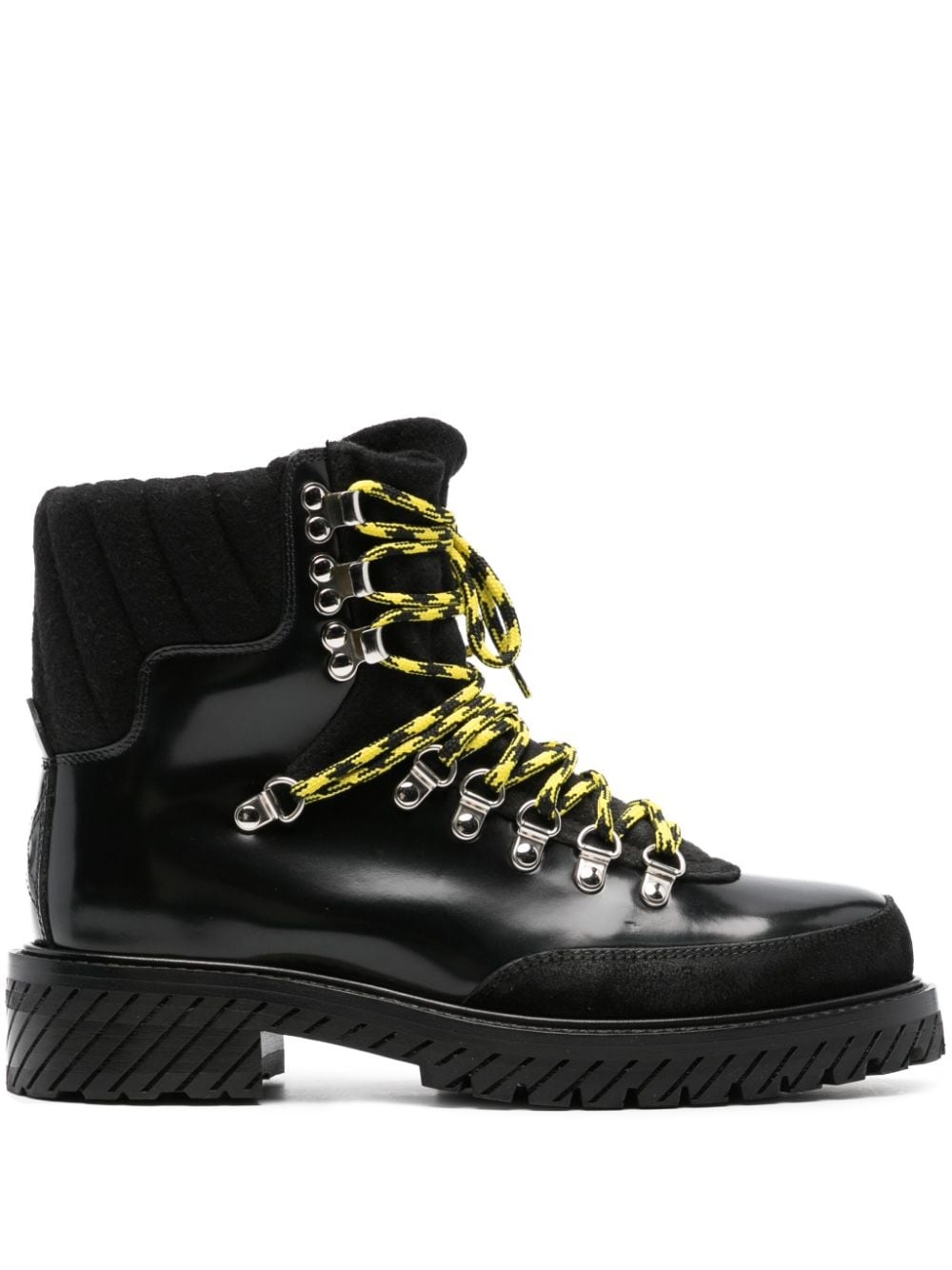 patent-leather ankle boots Highlights - Black - Calf leather - Patent finish - Signature diag-stripe pattern - Contrasting laces - Round toe - Front lace-up fastening - Branded insole - Rubber lug sole - Ankle-length Made in Italy Composition Outer: Calf Leather 100%, Fabric 100% Lining: Leather 100%, Fabric 100% Sole: Rubber 100% SIZE & FIT Measurement HEEL 1.57 in(4 cm) HEIGHT 5.51 in(14 cm) Sole height 0.98 in(2.5 cm)