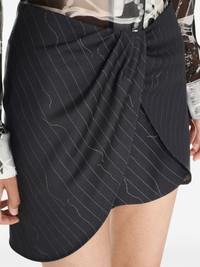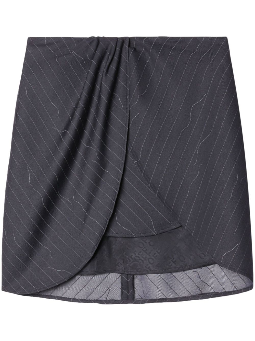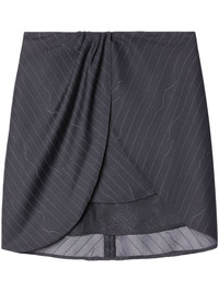 pinstripe draped miniskirt Off-White updates a classic design with this miniskirt. Emblazoned with a timeless pinstripe pattern that's worked with asymmetric lines, the garment is cut to a soft draped silhouette. Highlights - Ash grey - Virgin wool blend - Cotton - Pinstripe pattern - Draped design - High-waisted - Rear zip fastening - Above-knee length - Asymmetric hem Made in Italy Composition Outer: Virgin Wool 80%, Polyester 20% Lining: Cotton 100% SIZE & FIT Measurement HIPS 35.43 in(90 cm) LENGTH 16.92 in(43 cm) WAIST 25.19 in(64 cm) Washing instructions Read Manufacturer Guidelines