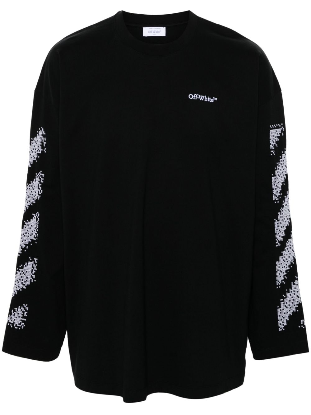 Pixel Diagonal T-shirt Highlights - Black - Cotton - Jersey texture - Crew neck - Embroidered logo at the chest - Long sleeves - Pixelated diagonal stripe embroidery - Straight hem Imported Composition Polyester 100%, Cotton 100% SIZE & FIT Model measurements Height 6 ft 1 in(1.85 m) Bust/Chest 35.82 in(91 cm) Hips 37.79 in(96 cm) Waist 29.13 in(74 cm) FittingInformation Designed for a boxy fit, intended for a loose fit throughout Made from a midweight non-stretch fabric, this piece offers minimal elasticity when worn This piece fits true to size – take your usual size