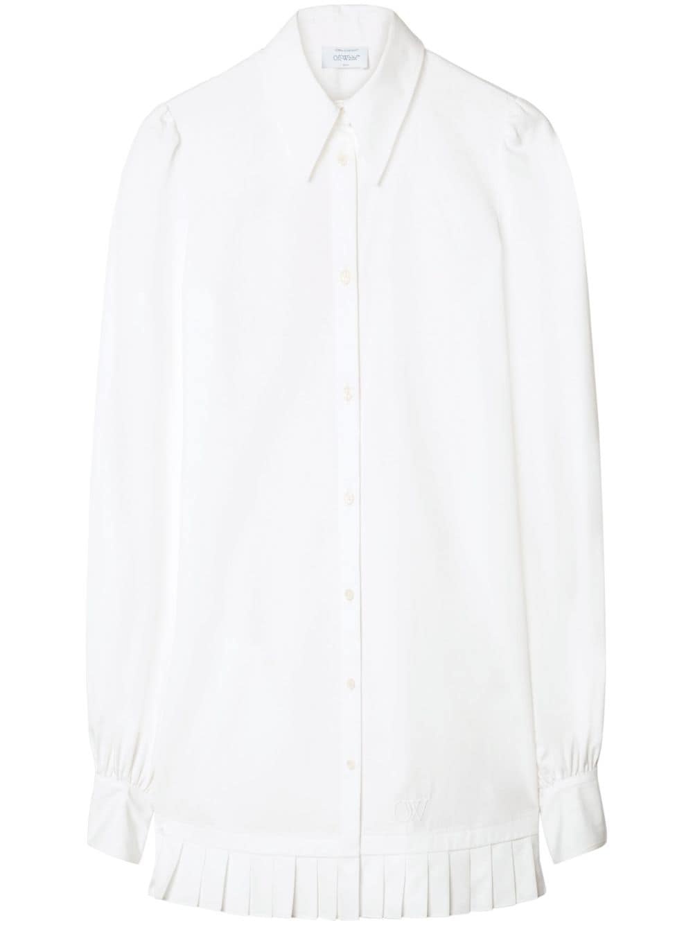 poplin pleated shirt dress Off-White offers a playful twist to this crisp poplin shirt dress. The classic button-up design is complete with a structured pleated hem. Highlights - White - Cotton - Poplin texture - Straight-point collar - Front button fastening - Long sleeves - Buttoned cuffs - Pleated edge - Above-knee length Made in Italy Composition Cotton 100% Washing instructions Read Manufacturer Guidelines