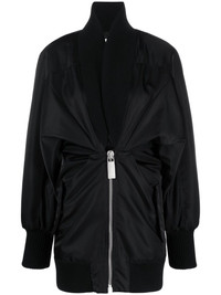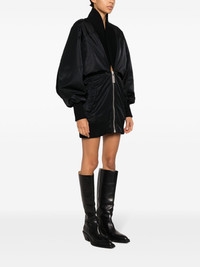 puff-sleeve zipped minidress A hybrid of the classic little black dress and performance outerwear, this Off-White minidress was made in Italy and defined by its voluminous sleeves and ribbed shawl lapels. Highlights - Black - High neck - Shawl lapels - Front zip fastening - Long puff sleeves - Two side flap pockets - Ribbed cuffs and hem - Two side flap pockets - Ruched detailing - Thigh-length - Straight hem Made in Italy Composition Lining: Viscose 100%, Polyester 100% Outer: Polyamide 100% SIZE & FIT Model measurements Height 5 ft 9 in(1.76 m) Bust/Chest 31.88 in(81 cm) Hips 35.43 in(90 cm) Waist 24.8 in(63 cm) FittingInformation Designed for a loose fit at the chest with a close fit over the waist and hips Made from a padded non-stretch fabric, giving it no natural elasticity This piece fits true to size – take your usual size Washing instructions Dry Clean Only