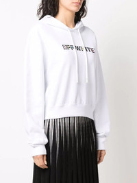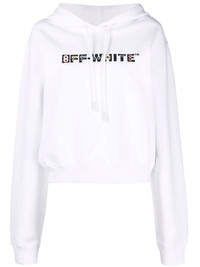rhinestone-embellished logo hoodie Off-White elevates the timeless hoodie silhouette with colourful rhinestones sitting atop a printed logo at the front. Cut for a relaxed fit, this optical white top is made from soft cotton and channels the sportswear references found throughout the brand's edit. Highlights - White/black - Cotton - Rhinestone embellishment - Logo print to the front - Drawstring hood - Long sleeves - Ribbed hem - Ribbed cuffs Imported Composition Cotton 100% SIZE & FIT Model measurements Height 5 ft 10 in(1.79 m) Bust/Chest 33.07 in(84 cm) Hips 35.82 in(91 cm) Waist 24.01 in(61 cm) FittingInformation This piece fits true to size. We recommend you get your regular size Cut for a loose fit Made with a mid-weight fabric Washing instructions Machine Wash