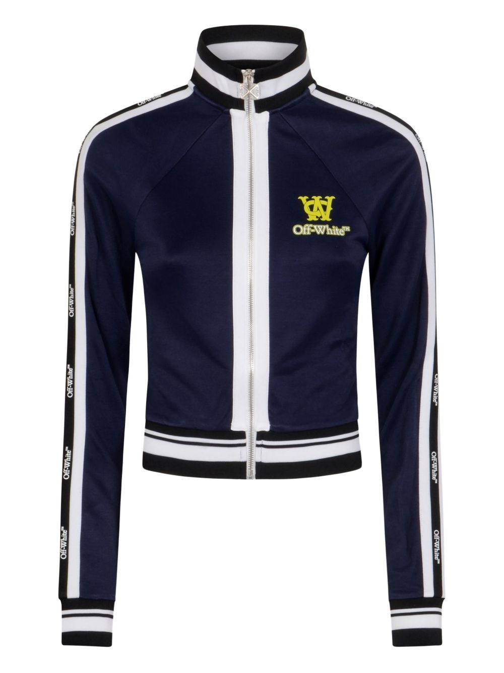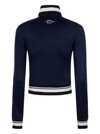 ribbed zip Jacket Highlights - Iris blue - Logo at chest - Ribbed details - Zip fastening - Stripe detail - High neck Imported Composition Cotton 95%, Elastane 5% Washing instructions Read Manufacturer Guidelines