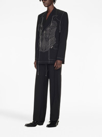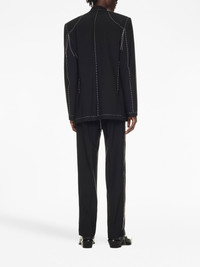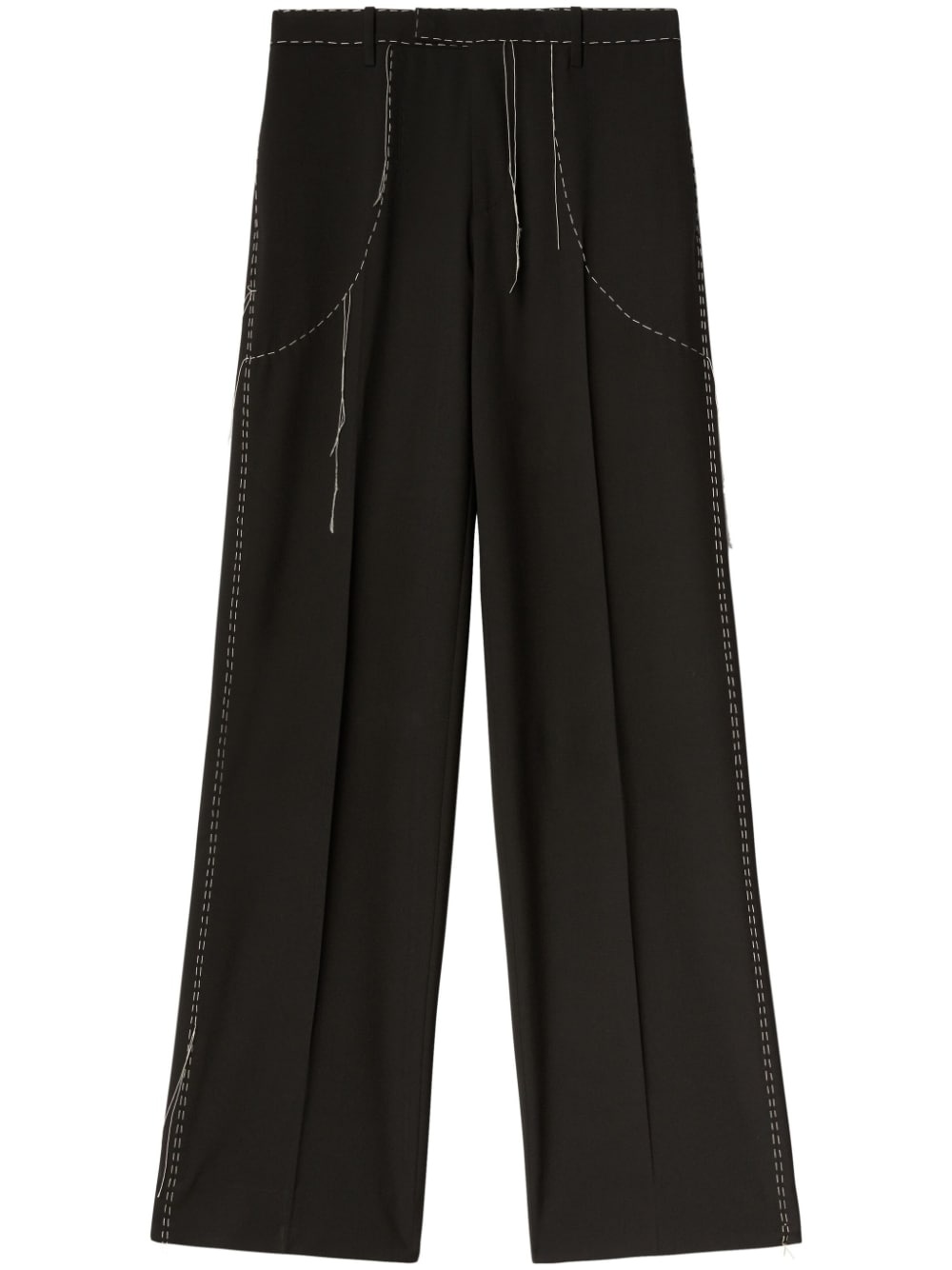 Runway contrast-stitching tailored trousers Off-White's affinity for elevating minimal tailoring with directional detailing is captured in these black trousers. Channeling the label's ethos of playful functionality, they're decorated throughout with contrast white stitching. Highlights - Black - Virgin wool-mohair blend - Contrast stitching - Pressed crease - Belt loops - Concealed front zip fastening - Two side inset pockets - Tailored cut - Full lining Made in Italy Composition Lining: Viscose 52%, Cupro 48% Outer: Virgin Wool 60%, Mohair 40%