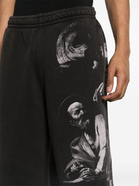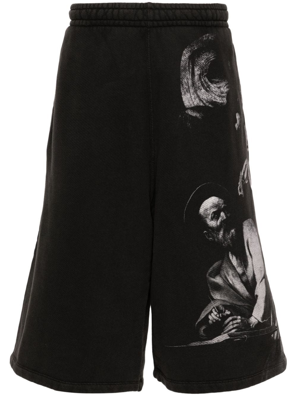 S. Matthew cotton track shorts Highlights - Charcoal grey - Cotton - Jersey texture - Graphic print to the front - Elasticated waistband with internal drawstring - Straight hem - Two side slit pockets - Straight hem - Knee-length - French terry lining Imported Composition Cotton 100% SIZE & FIT Model measurements Height 6 ft 2 in(1.87 m) Bust/Chest 37 in(94 cm) Hips 33.85 in(86 cm) Waist 27.95 in(71 cm) FittingInformation Designed for relaxed fit, offering a comfortable loose fit over the leg The elasticated waist allows for a comfortable fit Made from a midweight non-stretch fabric, this piece offers minimal elasticity when worn This piece fits true to size – take your usual size