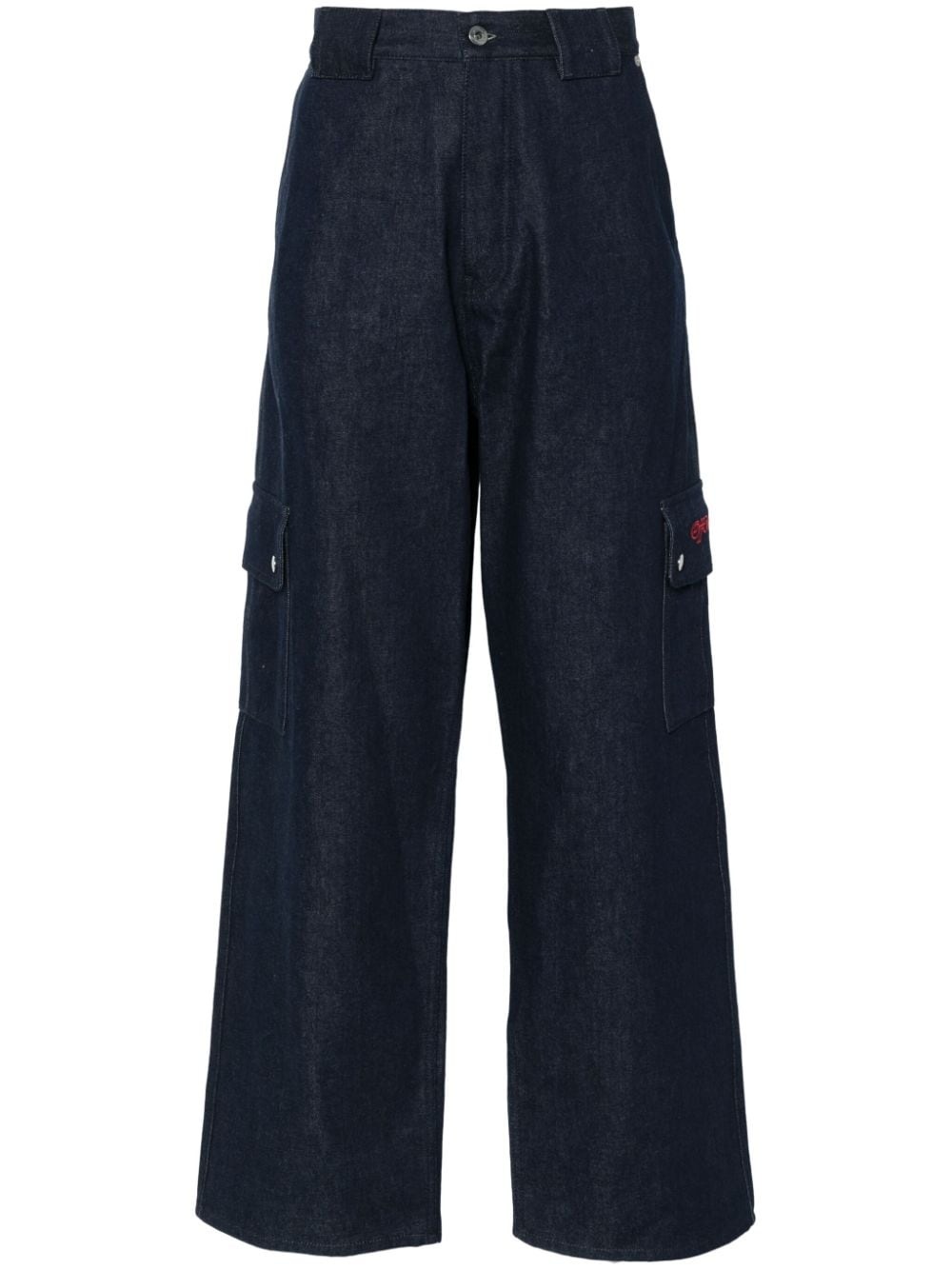 Script cargo jeans Highlights - Navy blue - Cotton - Denim - Embroidered logo at the leg - Belt loops - Button fly fastening - Straight leg - Classic five pockets - Two side cargo pockets - Straight hem - Long length Made in Italy Composition Lining: Polyester 65%, Cotton 35% Outer: Regenerative Cotton 100% SIZE & FIT Model measurements Height 6 ft 2 in(1.87 m) Bust/Chest 37.79 in(96 cm) Hips 37.79 in(96 cm) Waist 30.31 in(77 cm)