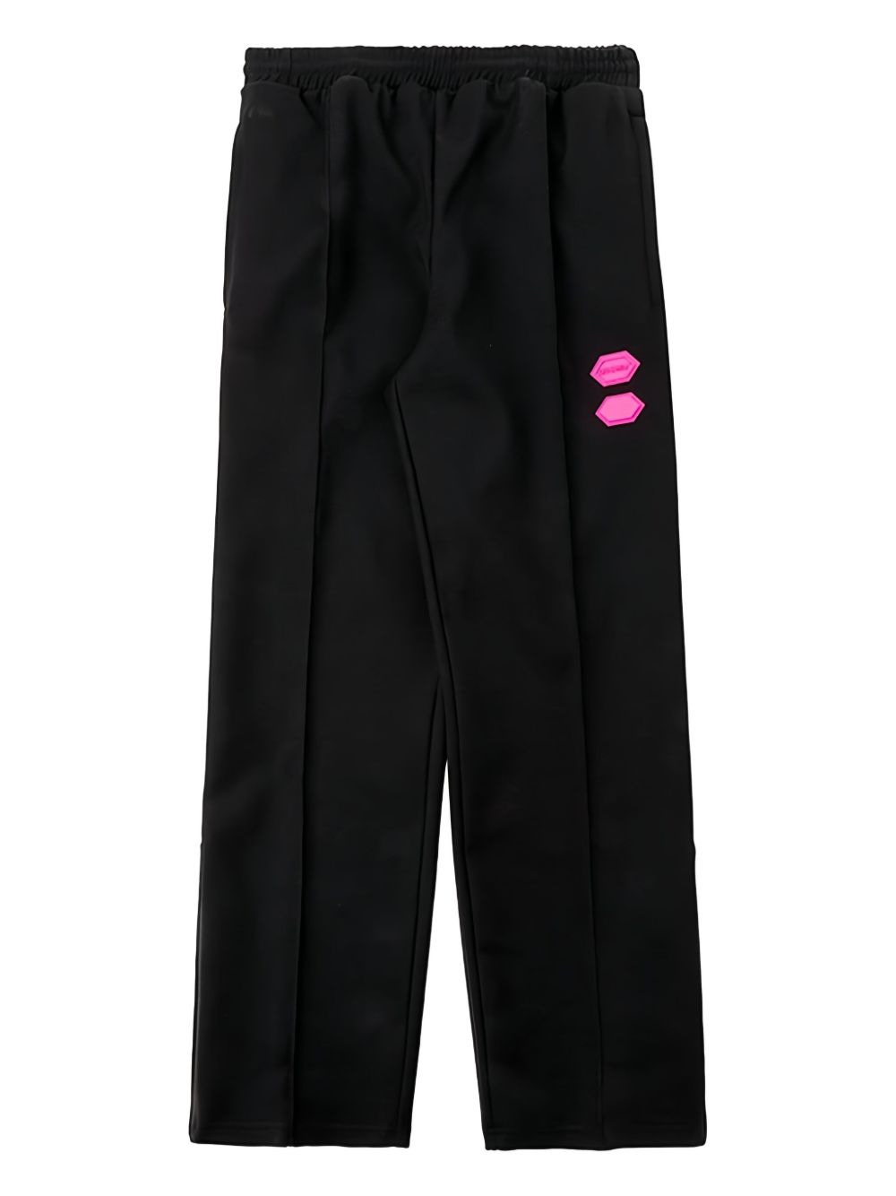 elastic-waistband track pants Highlights - Black - Colored stripe detail - Logo patch - Elasticated waistband - Pressed crease detail Made in Italy Composition Polyamide 61%, Cotton 35%, Spandex/Elastane 4% Washing instructions Machine Wash