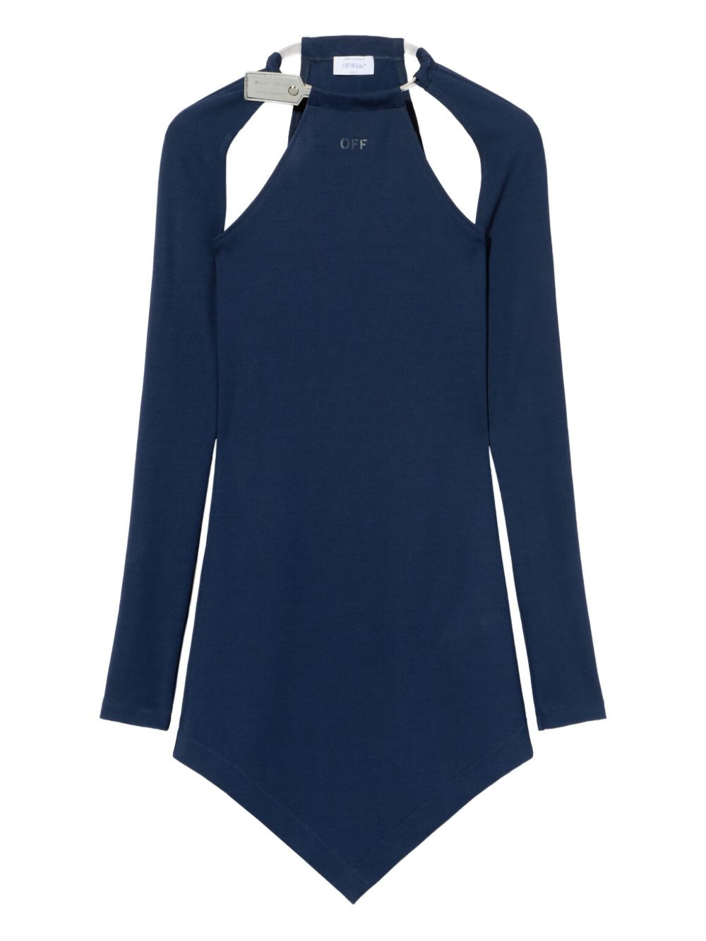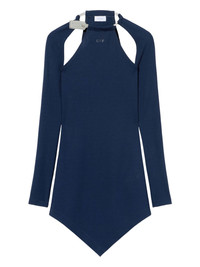 silver tie asymmetrical dress Highlights - Iris blue - Silver tie detail - Asymmetrical hem - Long sleeves - Open shoulder design - Concealed rear fastening Made in Italy Composition Viscose 61%, Nylon 33%, Lycra 6% Washing instructions Read Manufacturer Guidelines