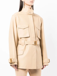 single-breasted belted-waist coat Off-White showcases the brand's sophisticated design style in this single-breasted coat from the SS22 collection. Featuring a tonal colourway, funnel neck and concealed front fastening, the garment's gold-tone hardware buckles with engraved-logo detailing reiterate the brand's signature use of branding. Imported Composition Outer: Leather 100% Lining: Viscose 52%, Cupro 48%