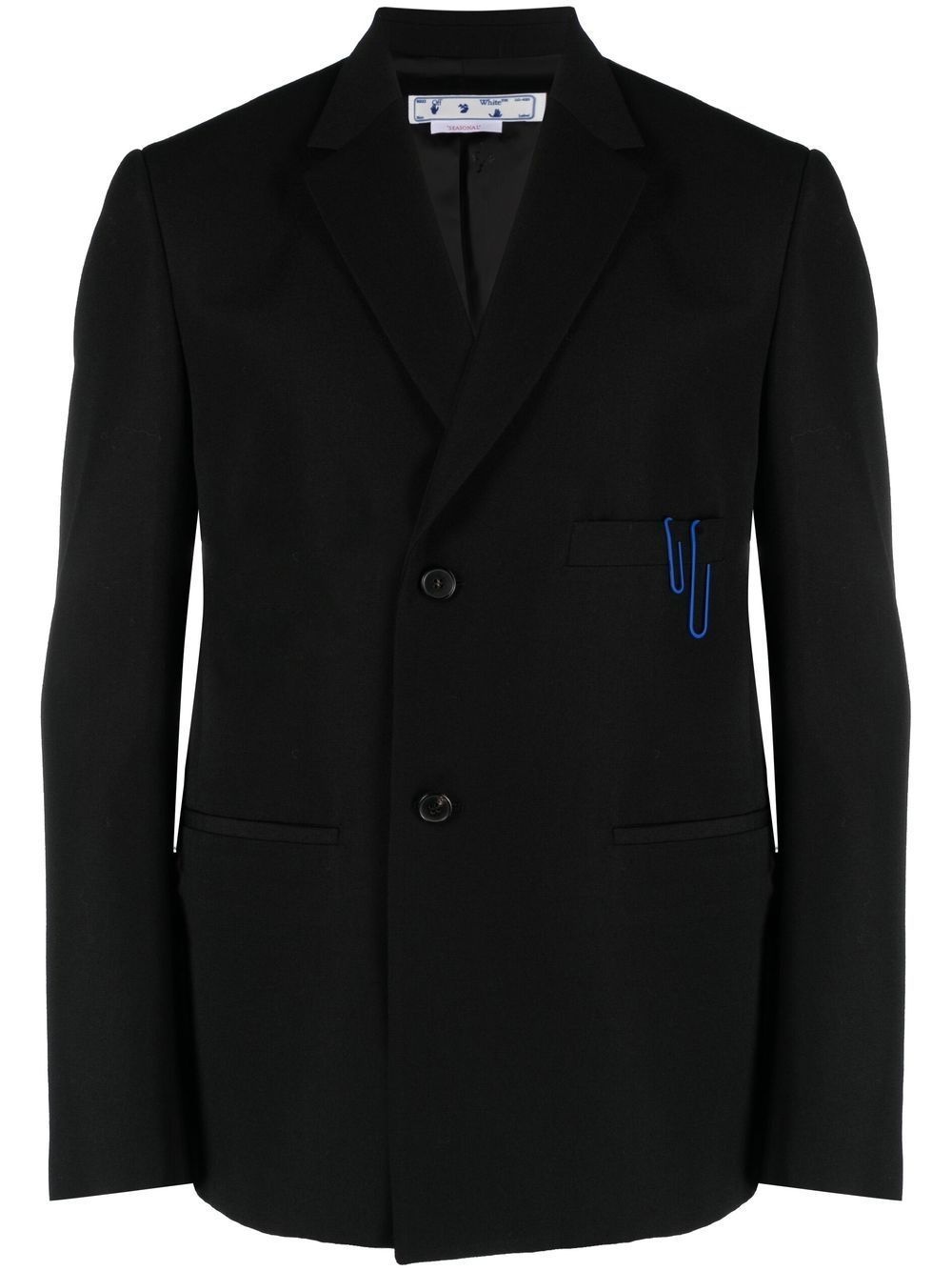 single-breasted tailored blazer jet black virgin wool blend front button fastening long sleeves chest welt pocket two side welt pockets tailored cut Made in Italy Composition Lining: Viscose 52%, Cupro 48% Outer: Virgin Wool 100%