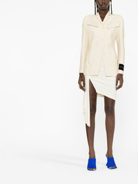 single-breasted wool blazer Although known for their streetwear style, Off-White proves their ability when it comes to tailoring in this single-breasted wool blazer. Designed in a timeless ecru hue, the fitted piece is labelled with a contrasting logo patch at the cuff for a recognisable completion. Made in Italy Composition Lining: Viscose 53%, Cupro 47% Outer: Virgin Wool 100% SIZE & FIT Model measurements Height 5 ft 10 in(1.79 m) Bust/Chest 31.1 in(79 cm) Hips 35.03 in(89 cm) Waist 24.01 in(61 cm) FittingInformation This piece fits true to size. We recommend you get your regular size Cut for a slim fit Made with a mid-weight non-stretch fabric Washing instructions Dry Clean Only