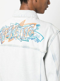 Skate bleached-effect denim jacket Off-white gives a classic silhouette a contemporary update. Made from cotton, this Skate denim jacket is elevated by a graffiti style print at the rear along with a bright yellow logo patch for a vibrant finish. Made in Italy Composition Outer: Polyester 100%, Cotton 100% Lining: Cotton 100% SIZE & FIT Model measurements Height 6 ft 2 in(1.87 m) Bust/Chest 37 in(94 cm) Hips 33.85 in(86 cm) Waist 27.95 in(71 cm) FittingInformation This piece fits true to size. We recommend you get your regular size Cut for a loose fit Made with a mid-weight non-stretch fabric Washing instructions Machine Wash