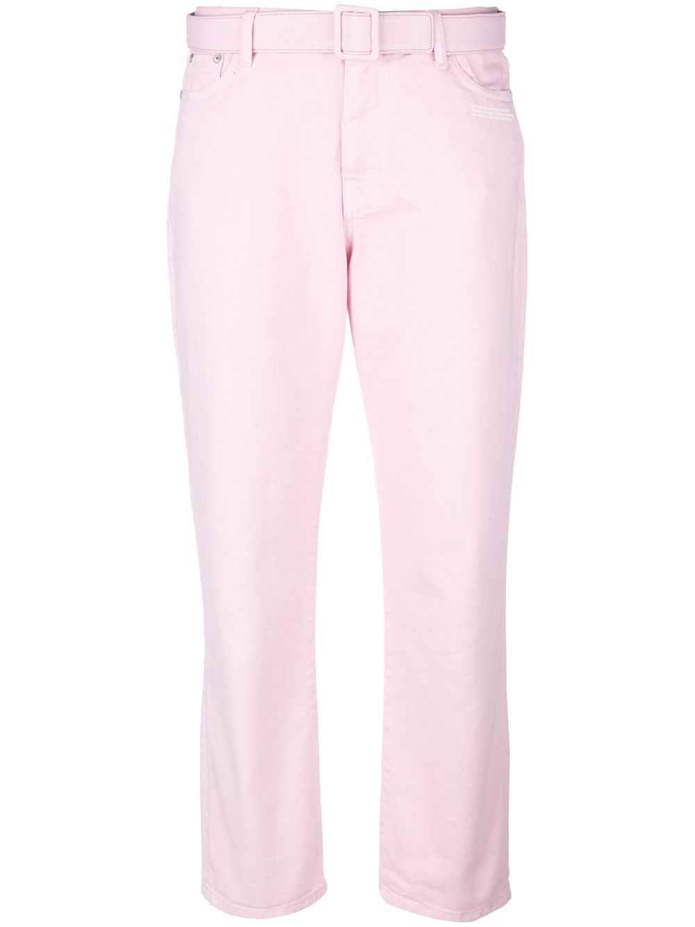 skinny jeans Founded in 2013 by DJ and fashion designer Virgil Abloh, the Milan based fashion label Off-White was conceived to link the gap between streetwear and high fashion. Inspired by the youth culture and with a distinctive aesthetic, Virgil Abloh creates designs with a cult following. Crafted from pure cotton denim, these pastel pink jeans feature a high rise, a belted waist, a five pocket design and a skinny fit. Made in Italy Composition Outer: Cotton 100% Lining: Cotton 100% SIZE & FIT Model measurements Height 5 ft 10 in(1.79 m) Bust/Chest 33.07 in(84 cm) Hips 35.82 in(91 cm) Waist 24.8 in(63 cm) Washing instructions Machine Wash