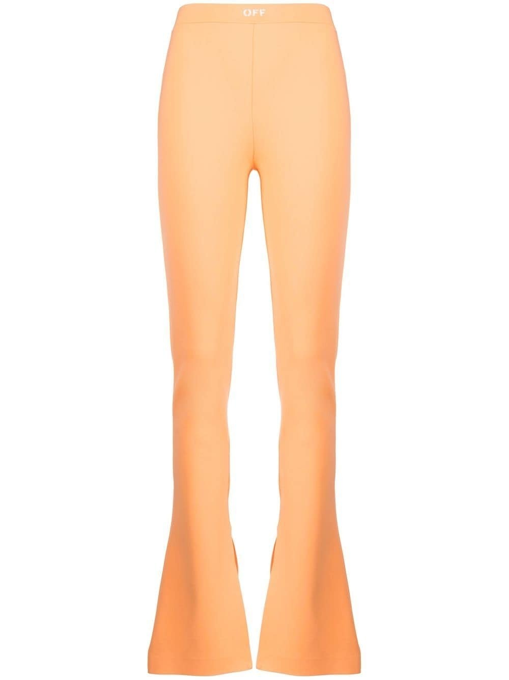 Sleek flared trousers Off-White offers bold contemporary style with these trousers. Imagined in a bright peach orange hue, they are detailed with side slits for a modern finish. Made in Italy Composition Polyamide 86%, Spandex/Elastane 14% SIZE & FIT Model measurements Height 5 ft 10 in(1.79 m) Bust/Chest 31.1 in(79 cm) Hips 35.03 in(89 cm) Waist 24.01 in(61 cm) FittingInformation This piece fits true to size. We recommend you get your regular size Designed to be fitted at the waist and through the thigh, loose from the knee Made with a mid-weight stretch fabric Washing instructions Machine Wash