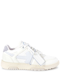 Slim Out Of office leather sneakers Highlights - White/light blue - Leather trim - Mesh panelling - Signature arrows motif - Signature zip tie tag - Logo patch at the tongue - Front lace-up fastening - Round toe - Branded insole - Flat rubber sole - Due to the dyeing process used, this product must not come into contact with water. Made in Italy Composition Leather 100%