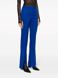 slit tailored trousers Off-White demonstrates its mastery of transitioning between casual and refined styles with these tailored trousers from the AW23 collection. The silhouette is refreshed with front slits at the ankles, while the cobalt-blue colourway elevates the garment. Highlights - Cobalt blue - High waist - Belt loops - Concealed front fastening - Two diagonal pockets to the sides - Two rear welt pockets - Front slit Made in Italy Composition Outer: Polyester 100% Lining: Cotton 100% SIZE & FIT Model measurements Height 5 ft 10 in(1.79 m) Bust/Chest 33.07 in(84 cm) Hips 35.82 in(91 cm) Waist 24.01 in(61 cm) FittingInformation Designed with a flared hem, these trousers allow for a close fit at the waist with a slim fit over the leg and widening towards the hem Made from a midweight non-stretch fabric This piece fits true to size – take your usual size Washing instructions Machine Wash