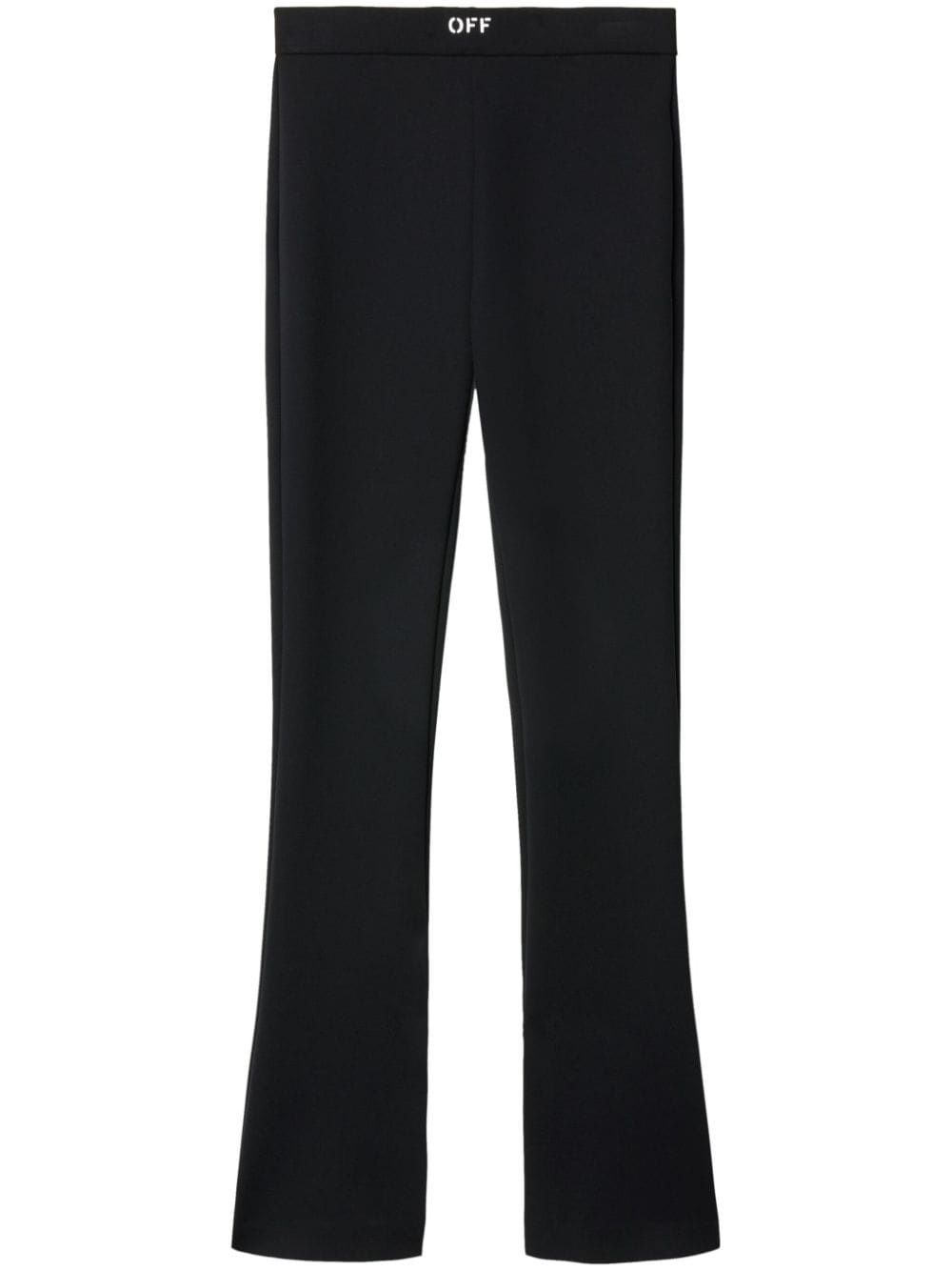 split-hem flared leggings Made from jersey, these black leggings by Off-White boast a sporty flared silhouette akin to yoga pants, featuring split cuffs to lend a spliced quality. They are finished with the brand's Off Stamp logo printed on the waistband as a mark of identity. Highlights - Black - Jersey texture - Logo print to the front - Elasticated waistband - Split cuffs - Flared Made in Italy Composition Polyamide 86%, Elastane 14% Washing instructions Read Manufacturer Guidelines