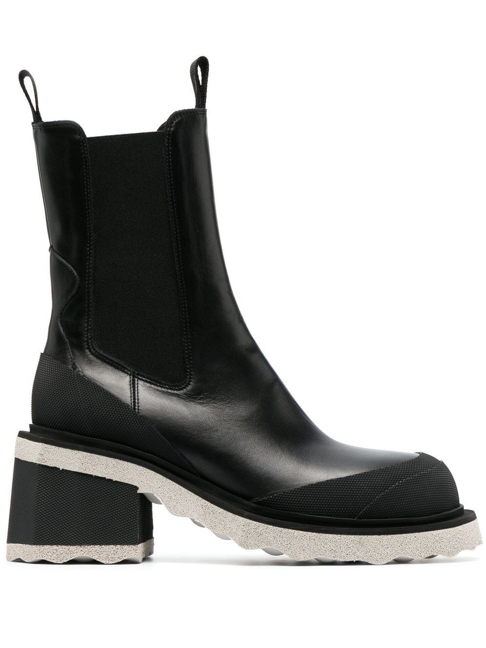 sponge-sole Chelsea boots black calf leather signature sponge-effect sole double pull-tab at the opening elasticated side panels tonal toecap 70mm block heel round toe mid-calf length pull-on style Made in Italy Composition Leather 100% SIZE & FIT Measurement CIRCUMFERENCE 7.87 in(20 cm) HEEL 2.75 in(7 cm) HEIGHT 7.48 in(19 cm) Sole height 0.59 in(1.5 cm)