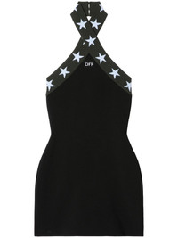 Star mini dress Highlights - Black - Rear hook fastening - Embroidered logo to the front - Halterneck - Open back Made in Italy Composition Viscose 88%, Acrylic 50%, Wool 50%, Polyester 12% Washing instructions Dry Clean Only