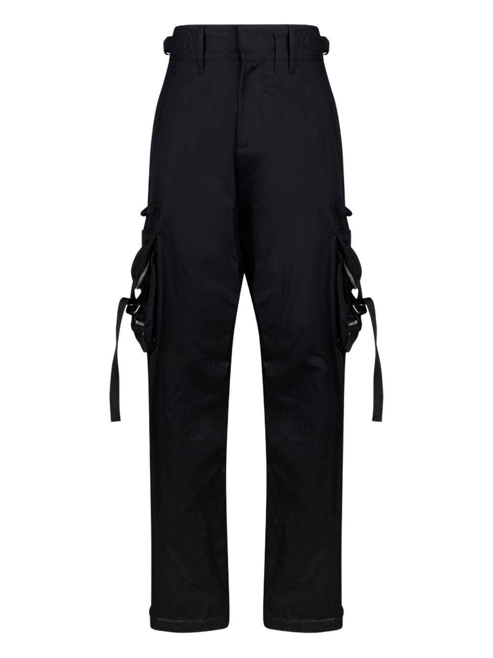 straight-leg cargo trousers Off-White is known for its industrial-inspired aesthetic. Echoing that sentiment, these black cargo trousers are cut to a straight-leg silhouette and adorned with multiple pockets. Highlights - Black - Cotton - Twill weave - Concealed front fastening - Decorative-button waist tabs - Belt loops - Straight leg - Two front welt pockets - Two side cargo pockets - Two rear welt pockets - Press-stud fastening cuffs Made in Italy Composition Lining: Cotton 100% Outer: Cotton 100% SIZE & FIT Measurement FRONT RISE 14.48 in(36.8 cm) INSIDE LEG 35 in(88.9 cm) BACK RISE 15.98 in(40.6 cm) HIPS 39.01 in(99.1 cm) Hem Width 20 in(50.8 cm) WAIST 32.99 in(83.8 cm) Washing instructions Read Manufacturer Guidelines