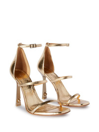 strappy leather sandals Made in Italy, these sandals by Off-White exude elegance. The pair is presented in a gold-tone leather, and defined by a subtle tonal pearl detail at the heel. Highlights - Gold-tone - Leather - Faux-pearl detailing - Thin straps - Open toe - Buckle-fastening ankle strap - High stiletto heel Made in Italy Composition Outer: Leather 100% Lining: Leather 100% Sole: Leather 100%