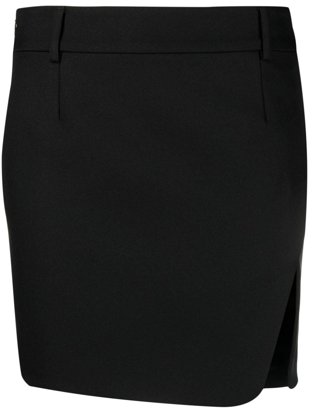 Tech Drill tailored miniskirt Off-White's tailored skirt is a practical and timeless addition. The high-waisted design is crafted from Tech Drill for a contemporary approach. Highlights - Black - Embroidered logo to the rear - High waist - Belt loops - Concealed side zip fastening - Side slit - Straight hem - Thigh-length Made in Italy Composition Outer: Polyester 100% Lining: Viscose 100% SIZE & FIT Model measurements Height 5 ft 10 in(1.77 m) Bust/Chest 34.64 in(88 cm) Hips 35.43 in(90 cm) Waist 24.8 in(63 cm) FittingInformation This mini-length skirt is intended to be worn just below the waist Made from a midweight non-stretch fabric This piece fits true to size – take your usual size Washing instructions Dry Clean Only