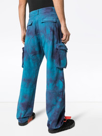 tie-dyed cargo trousers Off-White's cargo trousers have a distinct 90s feel to them that's no doubt part of the decade's resurgence. Tie dye and a baggy fit, need we say more? Christina Aguilera called, she wants them back. Featuring belt loops, side flap pockets, a button and zip fly and side slit pockets. Made in Italy Composition Cotton 100%