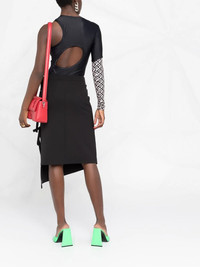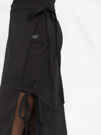 tie-fastening asymmetric skirt Off-White has a time machine. And the brand is taking you to the future with this contemporary layered skirt. Send us a postcard. Made in Italy Composition Polyester 53%, Virgin Wool 43%, Spandex/Elastane 4% SIZE & FIT Model measurements Height 5 ft 10 in(1.77 m) Bust/Chest 32.28 in(82 cm) Hips 35.03 in(89 cm) Waist 25.19 in(64 cm) FittingInformation This piece fits true to size. We recommend you get your regular size Designed to be fitted at the waist and hips, loose over the leg Made with a mid-weight stretch fabric Washing instructions Hand Wash