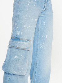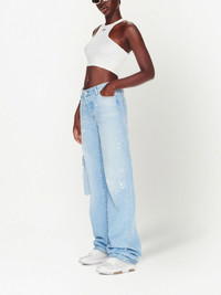 Toybox Painted wide-leg jeans Off-White channels its ethos of playful functionality and penchant for industrial aesthetics in these light-blue jeans. Artfully decorated throughout with white paint splatters, they're finished with an elongated wide leg that nods to the brand's streetwear influences. Made in Italy Composition Cotton 100% SIZE & FIT Measurement FRONT RISE 9.84 in(25 cm) INSIDE LEG 37.4 in(95 cm) HIPS 39.37 in(100 cm)