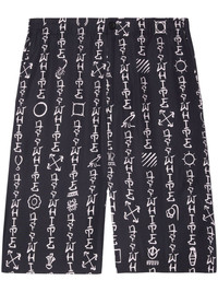 Type Ao bermuda shorts Highlights - Black - Black/white - All-over graphic print - Elasticated waistband - Concealed fly and button fastening - Two side inset pockets - Above-knee length Made in Italy Composition Viscose 100% Washing instructions Read Manufacturer Guidelines