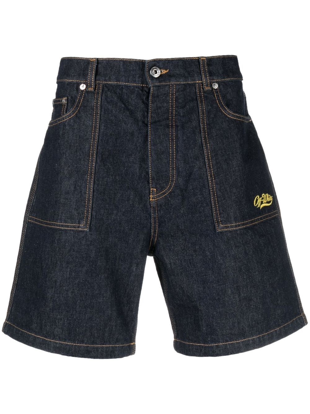 utility denim shorts Bright yellow stitching and logo patch contrasts the deep blue wash on these denim utility shorts, presented by Off-White for SS23. The pair is finished with a signature logo embroidery for a recognisable touch. Made in Italy Composition Cotton 100% SIZE & FIT Model measurements Height 6 ft 2 in(1.88 m) Bust/Chest 36.61 in(93 cm) Hips 35.82 in(91 cm) Waist 27.95 in(71 cm) FittingInformation This piece fits true to size. We recommend you get your regular size Regular fit Made with a mid-weight non-stretch fabric Washing instructions Machine Wash