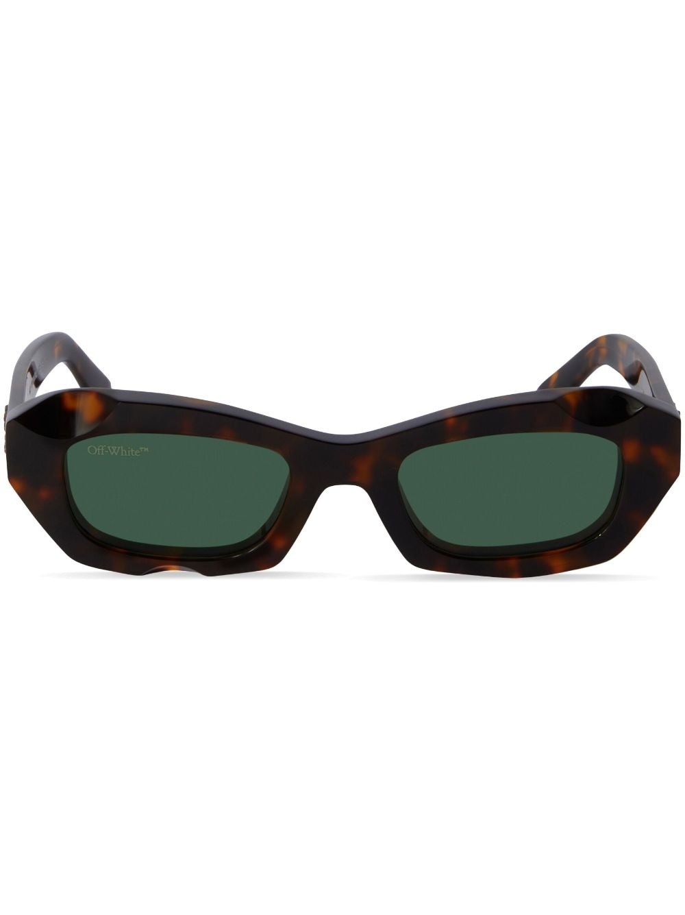 Venezia tortoiseshell rectangle sunglasses Eponymously named after the capital of the northern Veneto region of Italy, these Venezia sunglasses present a tortoiseshell-effect. An Off-White lens decal and the signature Arrows motif adorn its rectangular construction. Highlights - Havana brown - Acetate - Tortoiseshell effect - Signature arrows motif - Lens decal - Rectangle frame - Green tinted lenses - Uv-protective lenses - Straight arms - Curved tips - These glasses come with a protective case. Made in Italy Composition Acetate 100% Washing instructions Read Manufacturer Guidelines