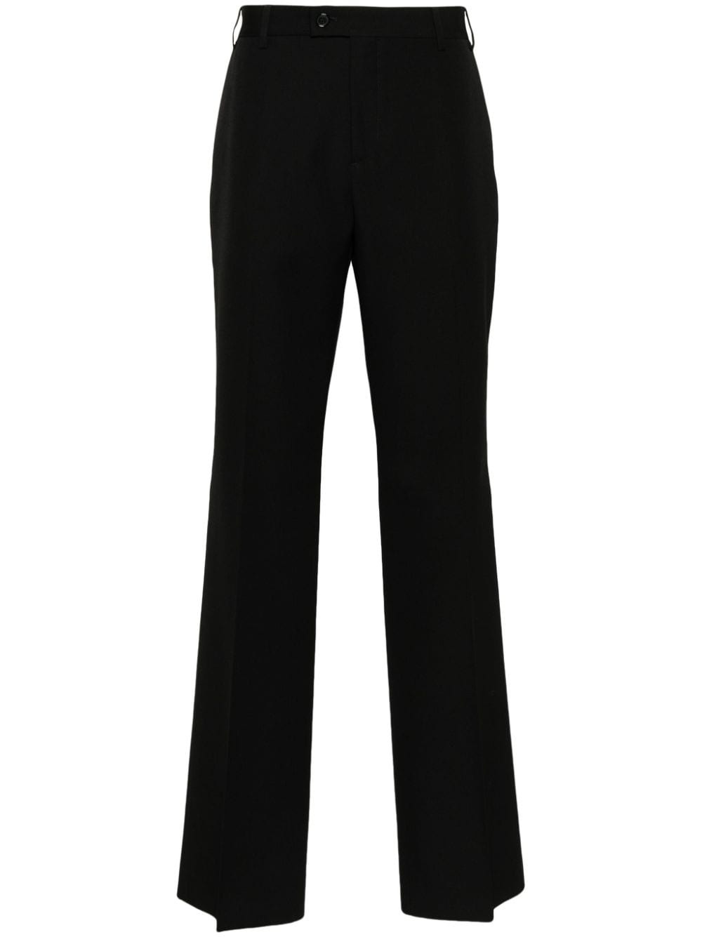straight-leg wool trousers Off-White proves its tailoring prowess with these black trousers. They’re cut from wool to a straight-leg silhouette and enhanced with pressed creases. Highlights - Black - Virgin wool - Belt loops - Two side slash pockets - Pressed crease - Embroidered logo to the rear - Two rear flap pockets - Concealed front zip and button fastening Made in Italy Composition Lining: Cotton 100%, Viscose 52%, Cupro 48% Outer: Virgin Wool 100% SIZE & FIT Model measurements Height 6 ft 2 in(1.87 m) Bust/Chest 38.18 in(97 cm) Hips 36.61 in(93 cm) Waist 29.13 in(74 cm) FittingInformation Designed for a straight-leg, allowing for an unrestricted and comfortable fit over the leg Made from a midweight non-stretch fabric This piece fits true to size – take your usual size Washing instructions Dry Clean Only
