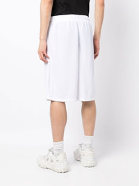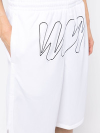 Wave Outl Diagonal mesh shorts Showcasing Off-white's penchant for simplicity, these shorts arrive in a brilliant white shade and are detailed with a contrast Wave outline at the front. They are finished with an elasticated waistband for an adjustable fit, and two side pockets to hold your essentials. Imported Composition Bottoms: Polyester 100% SIZE & FIT Model measurements Height 6 ft 2 in(1.87 m) Bust/Chest 34.25 in(87 cm) Hips 36.22 in(92 cm) Waist 29.52 in(75 cm) FittingInformation This piece fits true to size. We recommend you get your regular size Designed for a slim fit at the waist and loose over the leg Made with a mid-weight fabric Washing instructions Machine Wash