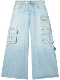 wide-leg cargo jeans Highlights - Blue - Concealed fly and button fastening - Belt loops - Classic five pockets - Logo tag Made in Italy Composition Cotton 100% Washing instructions Read Manufacturer Guidelines