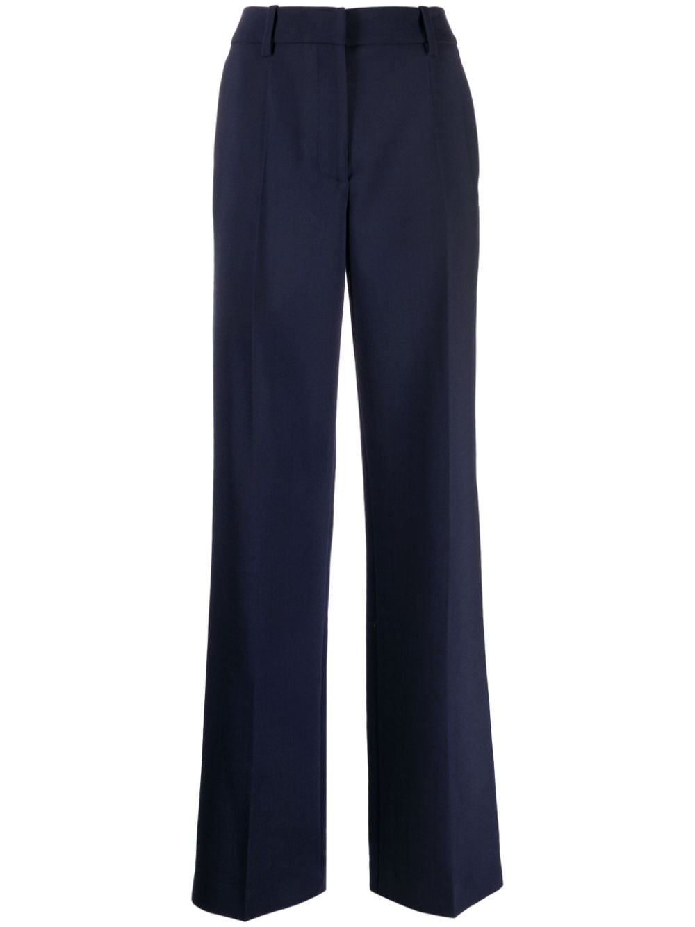 wide-leg virgin-wool-blend trousers Off-White presents its take on classic tailored trousers with this navy-hued pair. Cut to sit high at the waist, the pair fall to a charming wide-leg silhouette while a tonal embroidered logo arrives to the rear for a branded finish. Highlights - Navy blue - Virgin wool blend - High-waisted - Concealed front fastening - Belt loops - Two side slit pockets - Two rear welt pockets - Embroidered logo to the rear - Pressed crease - Wide leg Made in Italy Composition Outer: Virgin Wool 93%, Elastane 4%, Polyamide 3% Lining: Viscose 100% SIZE & FIT Model measurements Height 5 ft 10 in(1.77 m) Bust/Chest 28.74 in(73 cm) Hips 35.82 in(91 cm) Waist 24.4 in(62 cm) FittingInformation Designed for a straight-leg fit, these trousers allow for a close fit at the waist and an unrestricted, comfortable fit over the leg Made from a midweight stretch fabric, this piece offers elasticity and flexibility when worn This piece fits true to size – take your usual size Washing instructions Dry Clean Only