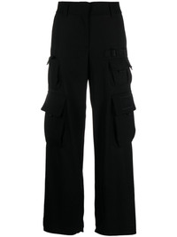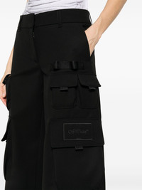 Wo Gab Toybox cargo trousers Displaying a modern aesthetic, these Off-White black trousers are adorned with multiple cargo pockets that infuse the design with an industrial flair. They are made from virgin wool and showcase a straight-leg silhouette that speaks to the label's laid-back style. Highlights - Black - Virgin wool - Logo patch to the front - Tape detailing - Mid-rise - Belt loops - Concealed front fastening - Two side slit pockets - Multiple cargo pockets - Two rear welt pockets - Straight leg Made in Italy Composition Outer: Virgin Wool 100% Lining: Cotton 100% SIZE & FIT Model measurements Height 5 ft 9 in(1.76 m) Bust/Chest 33.07 in(84 cm) Hips 34.64 in(88 cm) Waist 25.59 in(65 cm) Measurement FRONT RISE 9.44 in(24 cm) HIPS 38.58 in(98 cm) WAIST 29.13 in(74 cm) FittingInformation Designed with a wide-leg cut, these trousers allow for a close fit at the waist and offer a loose and roomy fit over the leg Made from a midweight non-stretch fabric This piece fits true to size – take your usual size Washing instructions Dry Clean Only