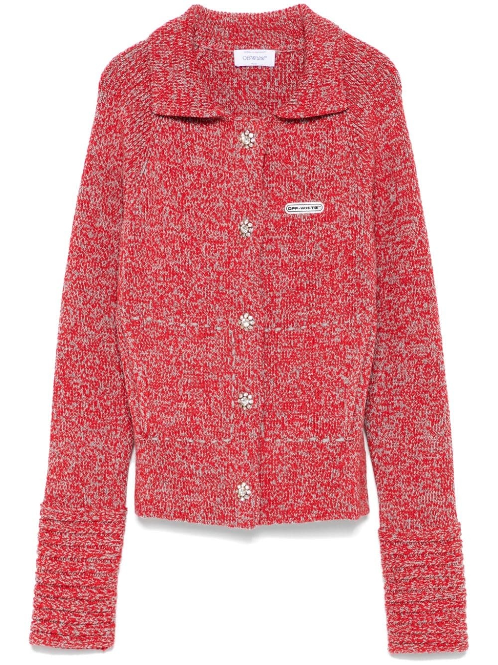 wool jacket Highlights - Red/grey - Wool - Knitted construction - Melange effect - Rhinestone-embellished buttons - Spread collar - Rubberised logo to he chest - Long raglan sleeves - Ribbed cuffs - Two side slit pockets - Straight hem Made in Italy Composition Wool 100% Washing instructions Hand Wash
